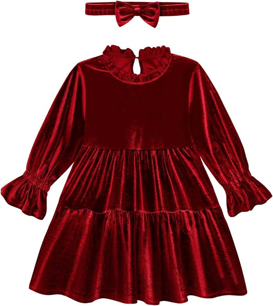 Toddler Baby Girls Velvet Dress Long Sleeve Christmas Dresses Princess Birthday Party Dresses Fall Winter Clothes