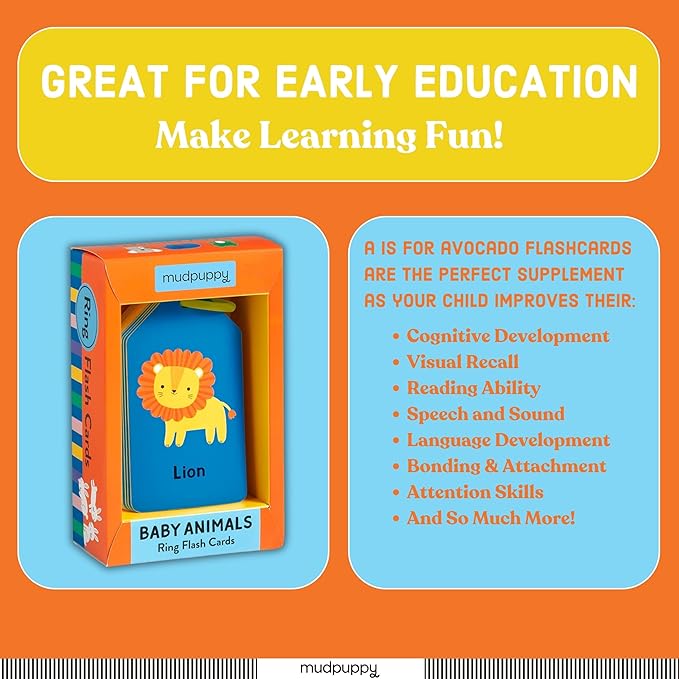 Mudpuppy Baby Animals — Ring Flashcards 26 Durable Double Sided Baby Animal Cards And Reclosable Ring With Colorful Art For Babies Ages 1+ Perfect For Preschool Or Travel For Teachers And Parents