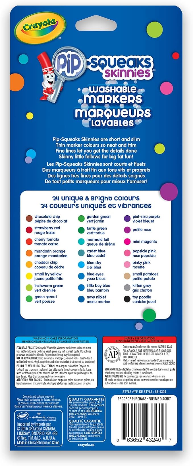 KS Crayola 24 Pip-Squeaks Skinnies Fine Line Washable Markers