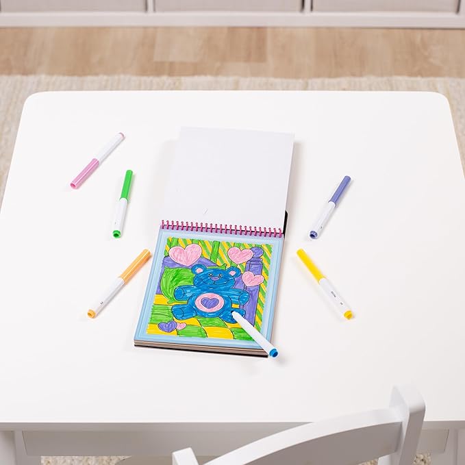 - 6 included markers store right in the cover.
