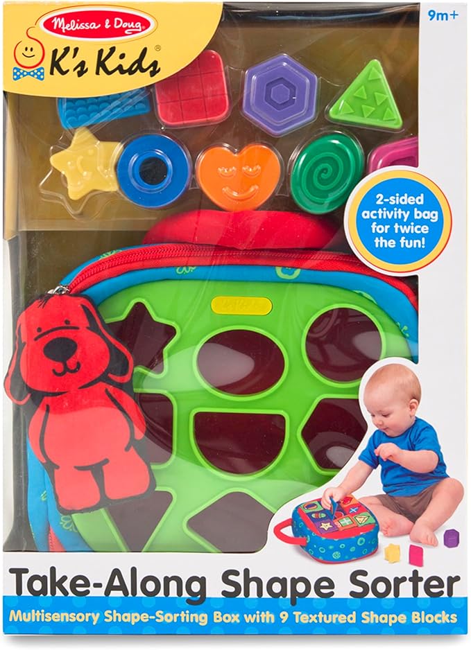 Melissa & Doug K's Kids Take-Along Shape Sorter Baby Toy With 2-Sided Activity Bag and 9 Textured Shape Blocks Sensory Toys, Travel Shape Sorter Toys For Toddlers And Infants