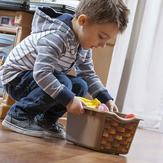 Step2 Lifestyle Custom Kids Kitchen Playset, Indoor/Outdoor Kitchenette, Interactive Play with Lights and Sounds, Made of Durable Plastic, 20 Piece Toy Accessories, Toddlers 2+ Years Old, Tan
