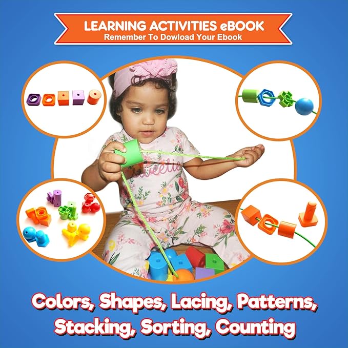 - WHAT YOU WILL LEARN | The 2-in-1 beads toy and twisting toy is designed to stimulate learning. There are so many things to learn with our jumbo beads & jumbo nuts and bolts, including: colors, shapes, stacking, sorting, matching, patterns, counting, math, same & different, independent play, cooperative play, strengthen hand & arm muscles, listen & follow direction, clean up after play.