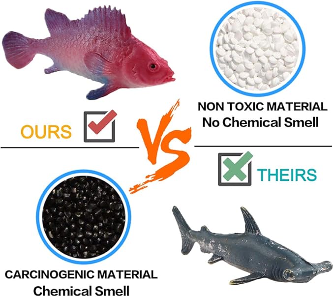 - Ocean animal toy, 46 Pack sea animal( no duplicated!!!) + 6 grass, beautifully detailed and made of 100% safety highest quality plastic material!