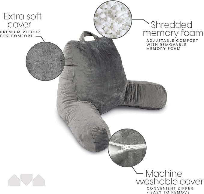 - Great For: Reading in bed, Curling up on the sofa, Sleeping upright for personal comfort, leg arm and back elevator also works for any sort of bed rest.