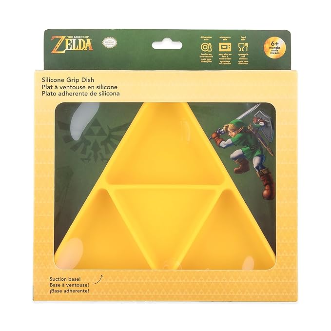 - ESSENTIAL FOR SELF-FEEDING – This Triforce Grip Dish from our The Legend of Zelda collection is perfect for children learning to eat by themselves; the suction base ensures the plate sticks; fits most high chair trays and smooth tables