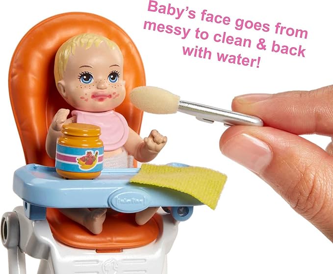 Barbie Skipper Babysitters Inc Dolls & Accessories, Set with Skipper Doll, Color-Change Baby Doll, High Chair & Crib Furniture