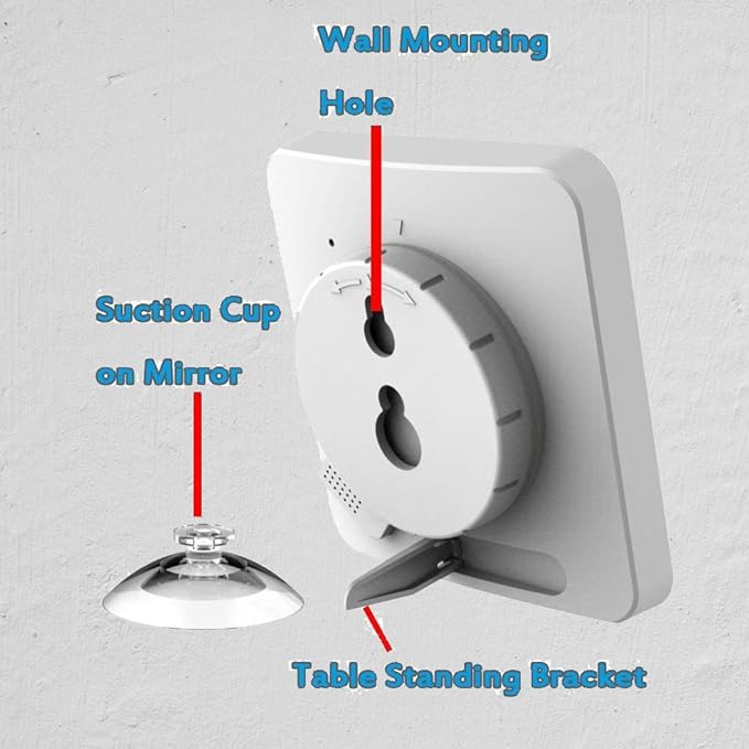 - Multi-function home clock, ideal for bathroom or room decroation. Wherever you put it, its fashion cute appearance, with indoor humidity and temperature display, table standing or wall handing or suction cup to mirror, this timer clock will become a beautiful ornament in your home.