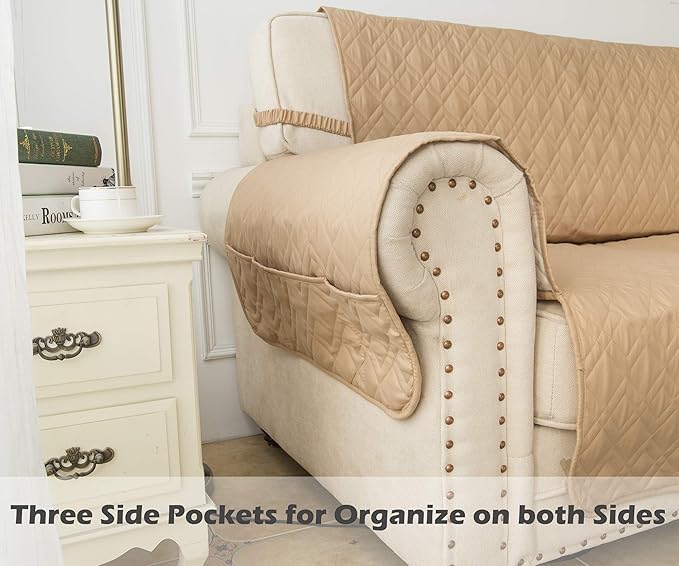 Ameritex Couch Sofa Slipcover 100% Waterproof Nonslip Quilted Furniture Protector Slipcover for Dogs, Children, Pets Sofa Slipcover Machine Washable (Sand, 68")