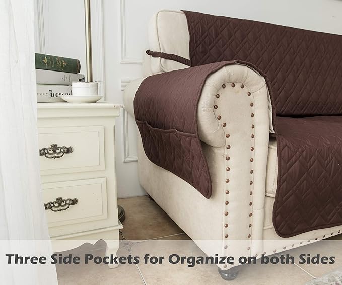 Ameritex Couch Sofa Slipcover 100% Waterproof Nonslip Quilted Furniture Protector Slipcover for Dogs, Children, Pets Sofa Slipcover Machine Washable (Chocolate, 68")