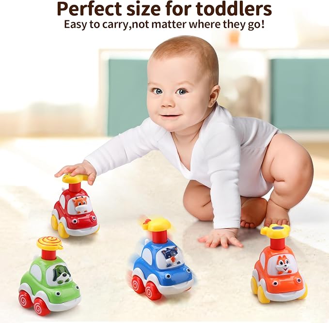 Amy&Benton Baby Toy Cars Toddler Toy Cars for 1 2 Year Old Cartoon Wind up Cars Press and Go Cars Push Go Cars for Toddlers 1-3 1st Birthday Gifts First Birthday Gift Toys Age 1 2 Year Old Baby Boys