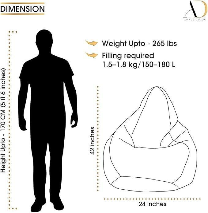 - BEAN COVER ONLY: This package only contains the bean bag cover; it does not come with any bean filling. The bean filling needs to be bought separately. The amount of use determines how often the bean bags need to be refilled. In this size, 1.5–1.8 kg/150–180 L can be filled.