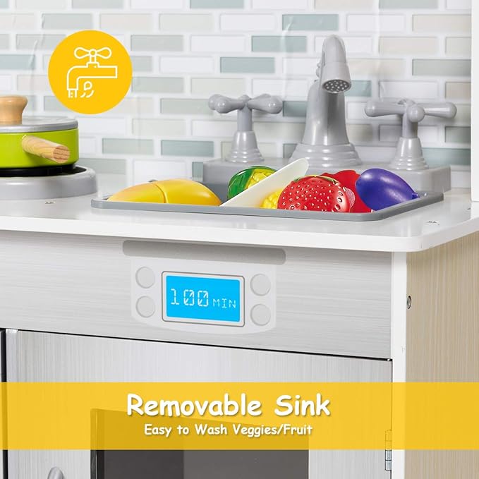 • SELECTED PREMIUM MATERIAL - Constructed by solid MDF, Costzon kids kitchen playset is durable and stable for your children to play. Plaint in child-friendly paint which is odorless so that your kids can play it freely. They can play like a master chef for years of wear and tear.