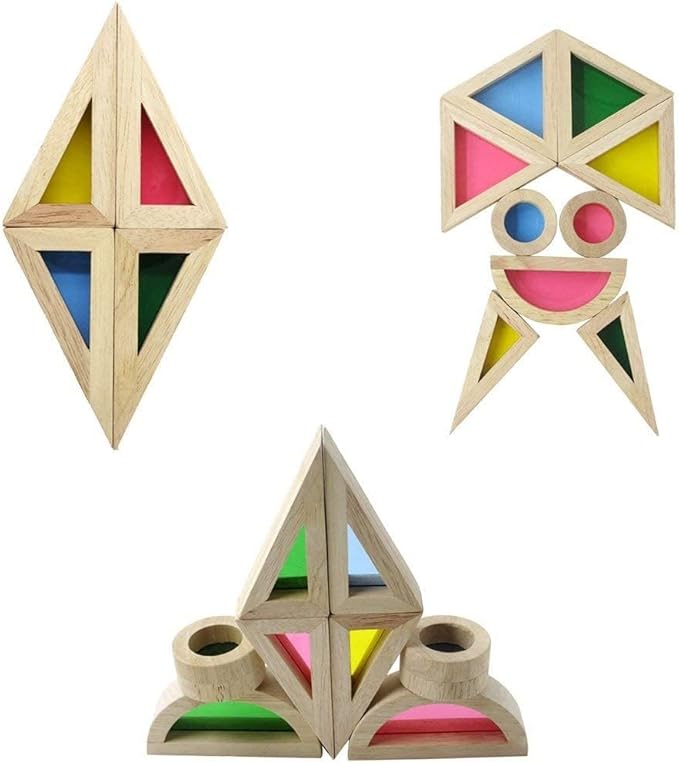 Agirlgle Wood Building Blocks Set for Kids 24 Pcs Rainbow Stacker Stacking Game Construction Toys Set Preschool Colorful Learning Educational Toys - Geometry Wooden Blocks for Boys & Girls