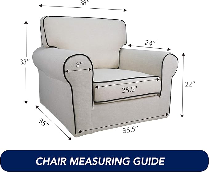 - SUPER DURABLE 3-LAYERS QUILTED FABRIC: Quilted from tear-resistant Microfiber fabric (polyester composition), this durable chair sofa furniture cover is composed of 3 layers with thick poly foam filling for extra comfort & softness. Our couch slipcovers are designed and ready-made to fit a variety of chair sizes with seat width up to 25.5"