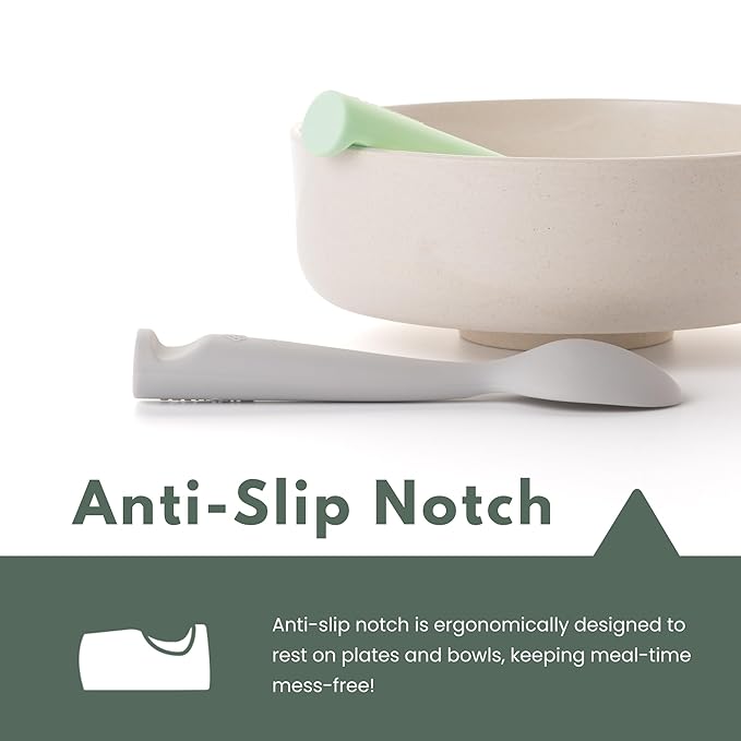 - EASY-TO-CLEAN AND MESS-FREE: Designed with a unique anti-slip notch, these baby spoons 6 months stay securely on bowls or plates, preventing unnecessary mess. Whether you're using them as baby spoons 4 months or feeding spoons for babies 6-12 months, they are completely dishwasher-safe for easy cleaning