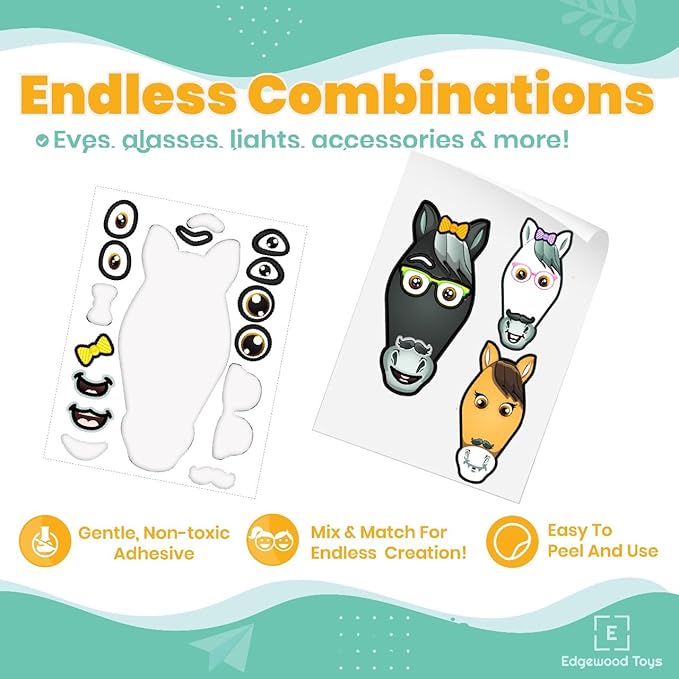 - Exclusive Design: One of a kind! Edgewood Toys is the ONLY place where you will find these popular "Make-A-Horse" sticker sets