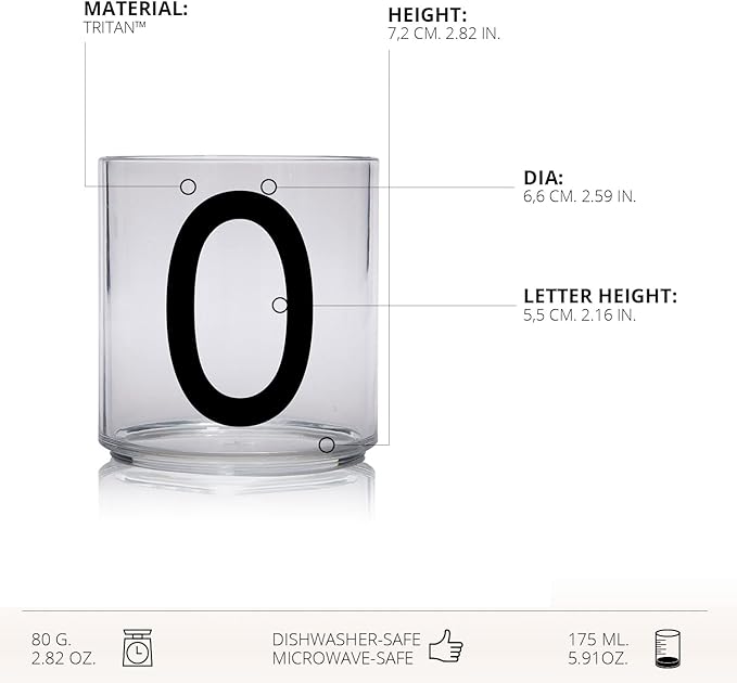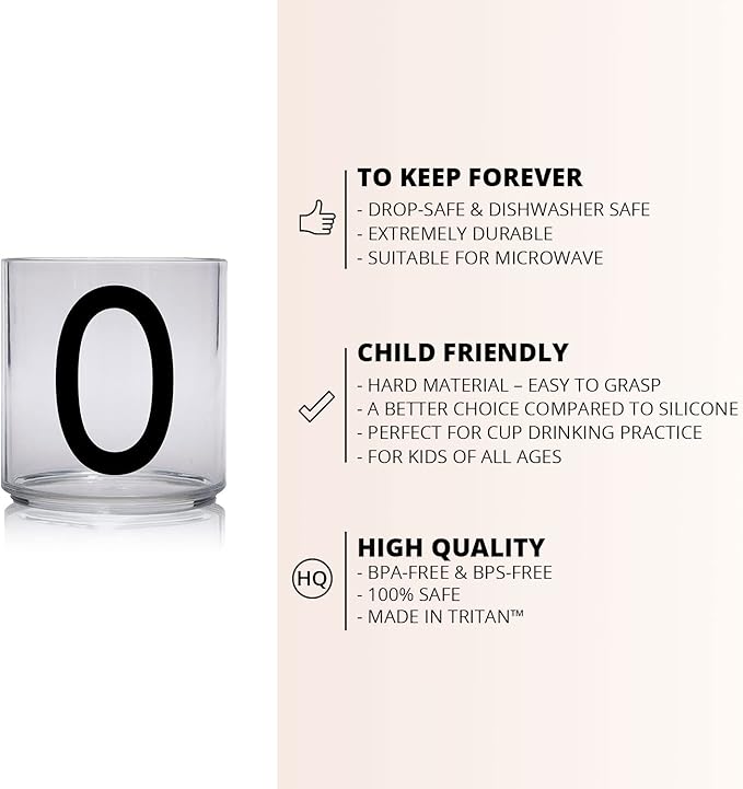 Design Letters Tritan Dinnerware Cups for Kids A-Z 6 Oz| Kids Glass Designed in Denmark for Baby feeding | Toddler Cup for Drinking | Unbreakable Tableware for Baby|Stackable Tumbler Cup BPA/BPS Free