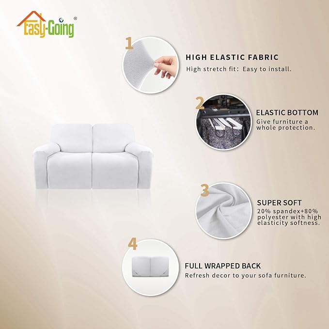 Easy-Going 6 Pieces Microfiber Stretch Sectional Recliner Sofa Slipcover Soft Fitted Fleece 2 Seats Couch Cover Washable Furniture Protector with Elasticity for Kids(Recliner Loveseat, Snow White)