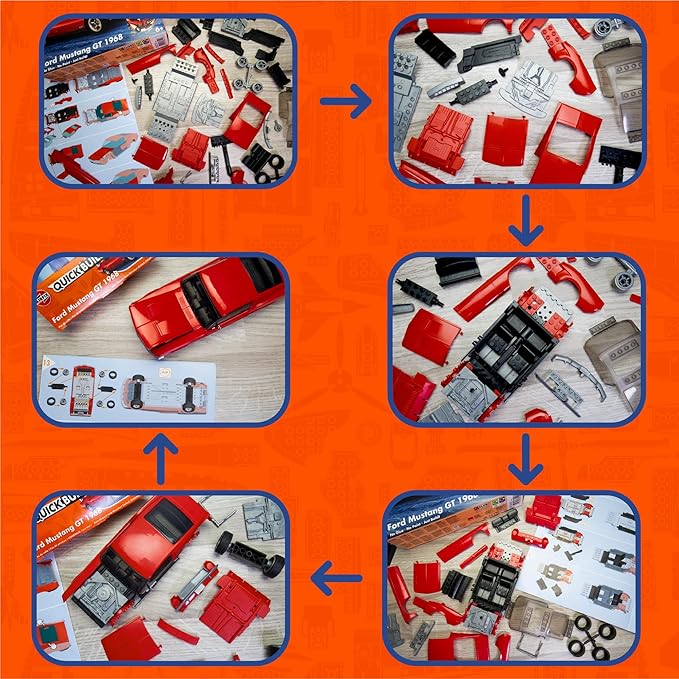 - Airfix Plastic Model Car Kits: This model car kit depicts the iconic Ford Mustang GT 1968 model in red. The pre-coloured pieces simply push together, without glue or paints, to build an impressive model which can then be decorated with the included self-adhesive stickers