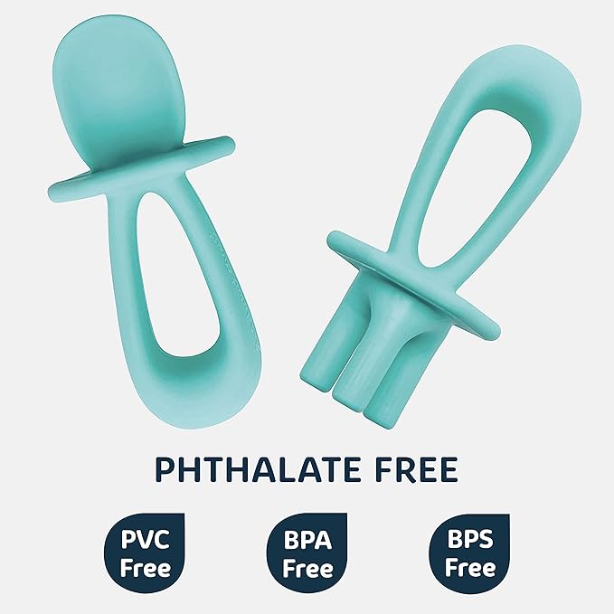 • TRAINING UTENSILS FOR BABY: Train your little one to be an independent self-feeder with a food grade silicone spoon and fork that feels soft and gentle on their gums. Our Tiny Twinkle silicone training utensils or baby-led weaning tools encourage your babies and toddlers in their first stage of self-feeding to learn how to eat in a fun, easy, and safe way.