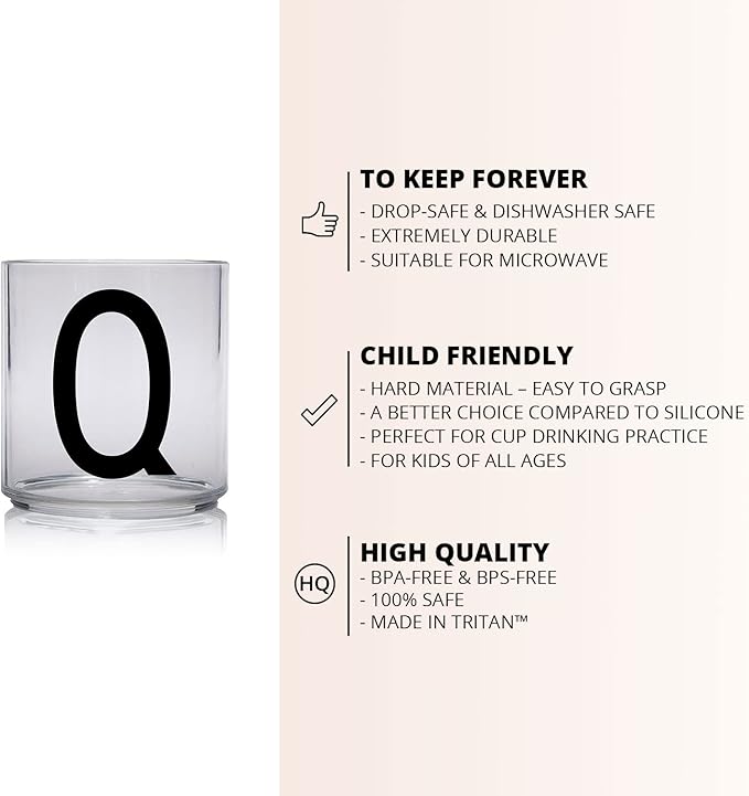 - SUSTAINABLE : Save plastic and disposable packaging by using this kids learning cup which is made up of tritan. Use the glass alone or add it along with Design Letters handle and lid. (sold separately)