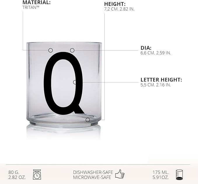 Design Letters Tritan Dinnerware Cups for Kids A-Z 6 Oz| Kids Glass Designed in Denmark for Baby feeding | Toddler Cup for Drinking | Unbreakable Tableware for Baby|Stackable Tumbler Cup BPA/BPS Free