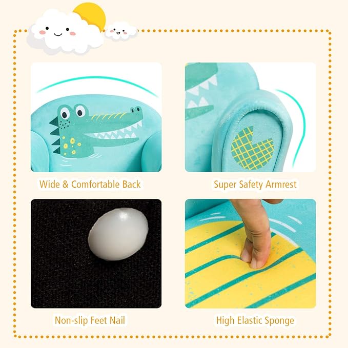 Costzon Kids Couch, Children's Sofa Armrest Chair with Pattern, Toddler Furniture w/Sturdy Wood Construction, Preschool, Lightweight Kids Couch Sofa Chair for Aged 1-5 Boys & Girls Gifts, Crocodile