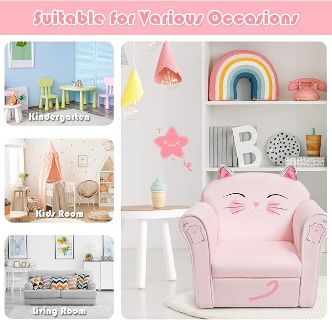 Costzon Kids Couch, Children's Sofa Armrest Chair with Pattern, Toddler Furniture w/Sturdy Wood Construction, Preschool, Lightweight Kids Couch Sofa Chair for Aged 1-5 Boys & Girls Gifts Presents, Cat