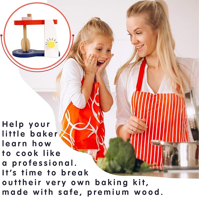 • ➤ ✅ 𝟗-𝐏𝐈𝐄𝐂𝐄 𝐖𝐎𝐎𝐃𝐄𝐍 𝐌𝐈𝐗𝐄𝐑 𝐊𝐈𝐓 𝐅𝐨𝐫 𝐊𝐈𝐃𝐒 𝟑 𝐘𝐞𝐚𝐫𝐬 & 𝐀𝐛𝐨𝐯𝐞: We have included 9 different wooden, painted pieces in this expansive wooden kid’s mixer set. Watch your kids have fun with cheese, eggs, a knife, recipes, pancake mix, a bowl, and the crank mixer, as they explore their own personal ideas and creativity.