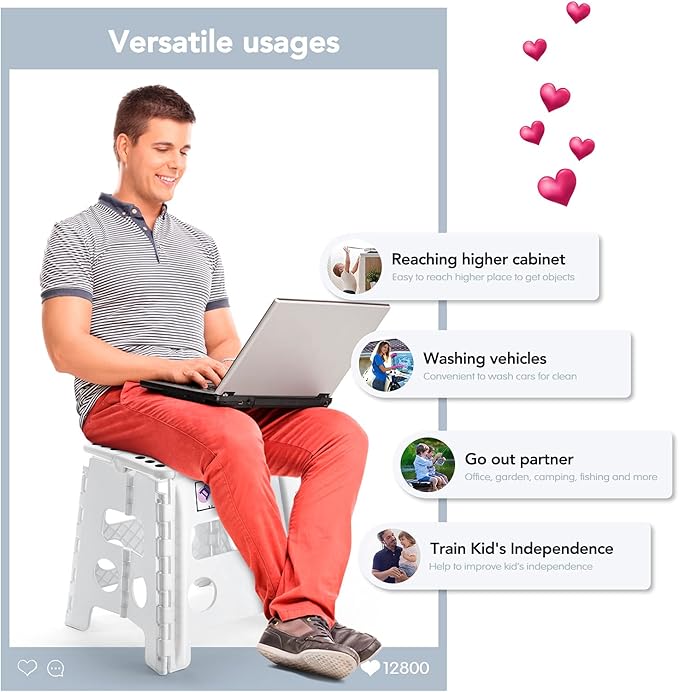 - Non-Slip and Easy to Use Design : Grip-dot textured surface, anti-skid rubber feet designed make sure the stepping stool are stable to use. Opens with one flip of the hand and easily folds away . It's portable to carry it to wherever you go