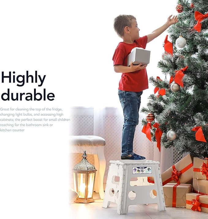Delxo 13" Folding Step Stool for Kids and Adults, Non-Slip Foldable Step Stools with Handle,Plastic Portable Folding Stool for Bathroom,Bedroom,Kitchen,Hold up to 300lbs White