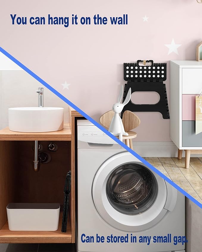 - 【Space Saving Foldable Stool 】-ACKO step stool save your closet space more than 90% when it folded up.It's quickly and easily folds away for convenient storage so you can opens with one flip of the hand.Also you can hides them in corner at home because it's so compact.