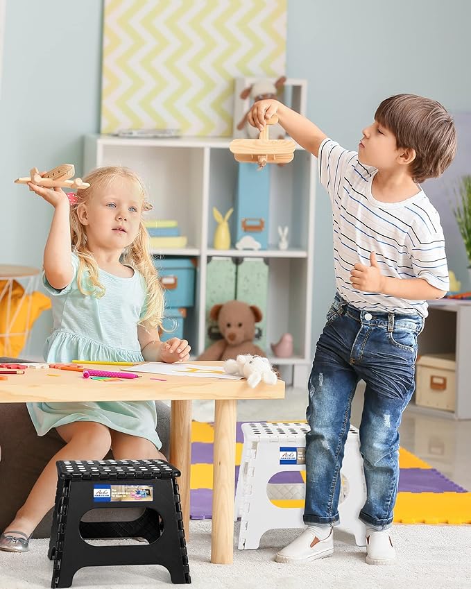 ACKO Folding Step Stool Foldable Step Stools for Kids and Adults 11 Inch Foot Stool Black Plastic Step Stool with Portable Handle Small Stool Hold up to 300lbs for Bathroom,Bedroom, Kitchen 1PC