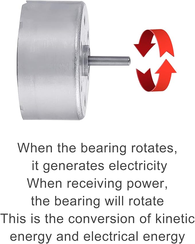 • Two-way Conversion: When the bearing rotates, it generates electricity, when receiving power, the bearing will rotate. This mini wind generator set enables the conversion of kinetic and electrical energy