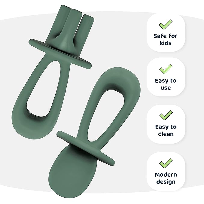 - WITH AN ERGONOMIC DESIGN: Babies and toddlers will enjoy using these baby led weaning tools. With an ergonomic design, the child can easily grip this baby spoon and baby fork in various ways. Our silicone baby eating supplies also help promote children's hand-to-mouth coordination while encouraging independent eating. Our products can be used by left- or right-handed babies.