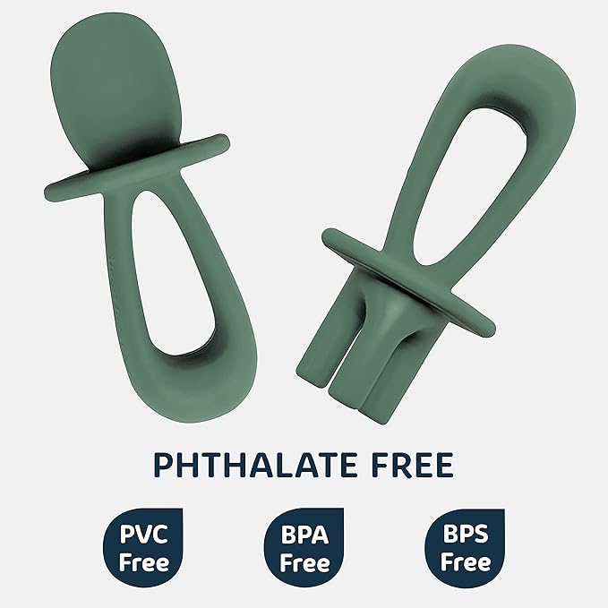 - TRAINING UTENSILS FOR BABY: Train your little one to be an independent self-feeder with a food grade silicone spoon and fork that feels soft and gentle on their gums. Our Tiny Twinkle silicone training utensils or baby-led weaning tools encourage your babies and toddlers in their first stage of self-feeding to learn how to eat in a fun, easy, and safe way.