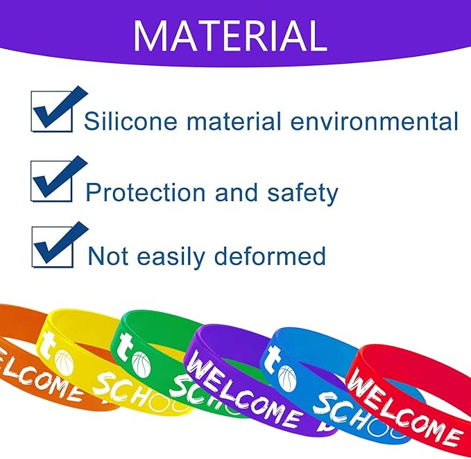 - Package contain - 48 packs of rubber bracelets are printed with text of "Welcome back to school".