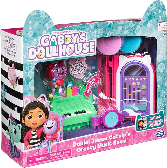 Gabby’s Dollhouse, Groovy Music Room with Daniel James Catnip Figure, 2 Accessories, 2 Furniture Pieces and 2 Deliveries, Kids Toys for Ages 3 and up