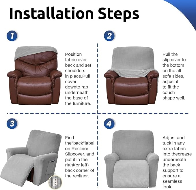 - Excellent design:Our recliner cover is a piece of installation; in the aspect of installation is more inclined to simple; attached to the whole sofa; Please follow our installation steps about 5 minutes can be installed successfully