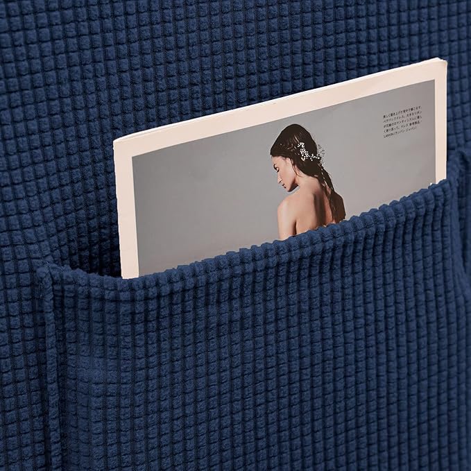 KEKUOU Recliner Chair Covers,Lazy Boy Recliner Covers Stretch Couch Cover Slipcovers 1 Piece Furniture Protector with Elastic Bottom for Dog,Kids.(Recliner, Navy Blue)