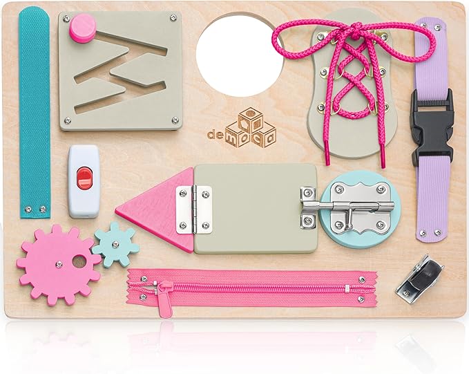 - Wooden Montessori busy board - Educational toy for toddlers, this montessori busy board for toddlers is a sensory busy board with 10 fun activities that support fine motor skills, problem-solving, and cognitive growth. Perfect for preschool learning and toddler activities at home or on the go.