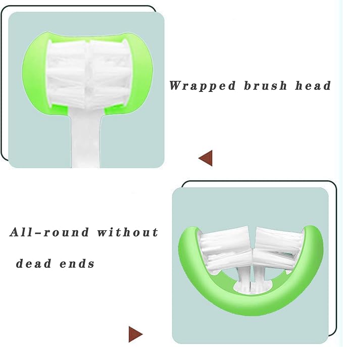 - 360-Degree Coverage: This kids toothbrushes has 3 brush heads, which can cover different sides of the teeth, easily save the time of cleaning teeth and keep the teeth healthy. The wrap-around design can be quickly and easily removed even in the most difficult to reach areas More plaque