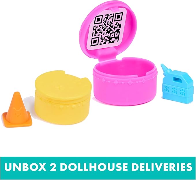 - 2 DOLLHOUSE DELIVERIES, 2 SURPRISE ACCESSORIES: Discover 2 Accessories – a ramp bed & stoplight, then unbox 2 Dollhouse Deliveries to reveal a traffic cone & gas can, for your doll house adventures