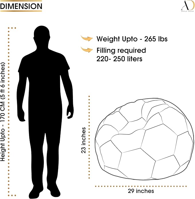 - BEAN COVER ONLY: This package only contains the bean bag cover; it does not come with any bean filling. The bean filling needs to be bought separately. The amount of use determines how often the bean bags need to be refilled. In this size, 1.5–1.8 kg/150–180 L can be filled.
