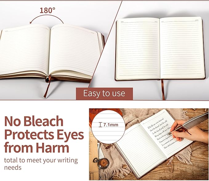 - LINED INNER PAPER - This leather softcover diary has 144 sheets/288 pages of lined papers; The rounded corners of the paper can protect the diary from curving. It can be 180 lay-flat, making it a pleasure to write in. Used 100gsm bleed proof paper, to ensure a quality writing experience.