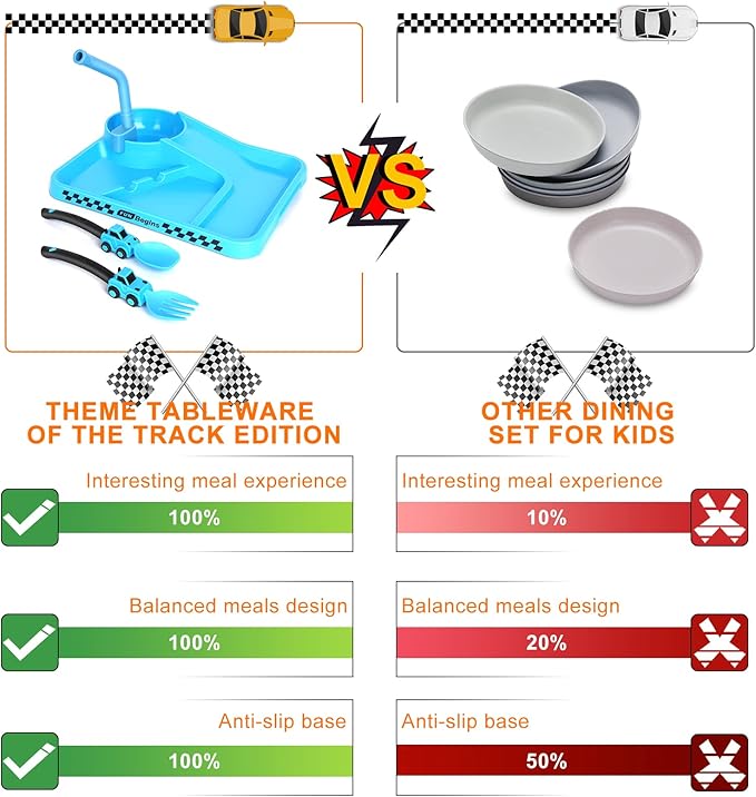 - [Designed for Child Safety] -- Toddler tableware set is designed for the safety of young children. includes soft grips that are perfect for small hands and can be bent but will not break. plates have four non-slip pads on the bottom, so don't worry about your child spilling food everywhere! Perfect for any meal or snack.