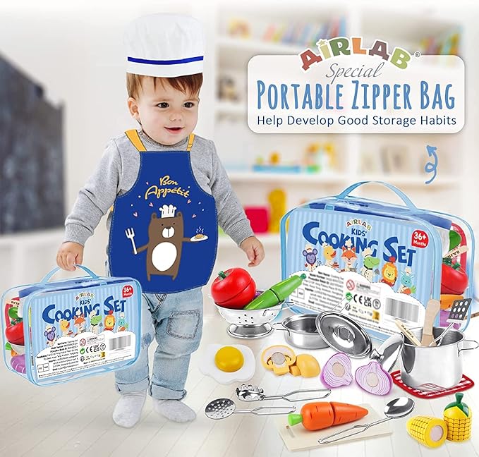 - Great Gift for Boys and Girls: The Airlab cooking play food set is an ideal present for kids who love kitchen playsets and wooden toys. It provides a wonderful screen-free play option, suitable for toddlers, preschoolers, and children above 18 months