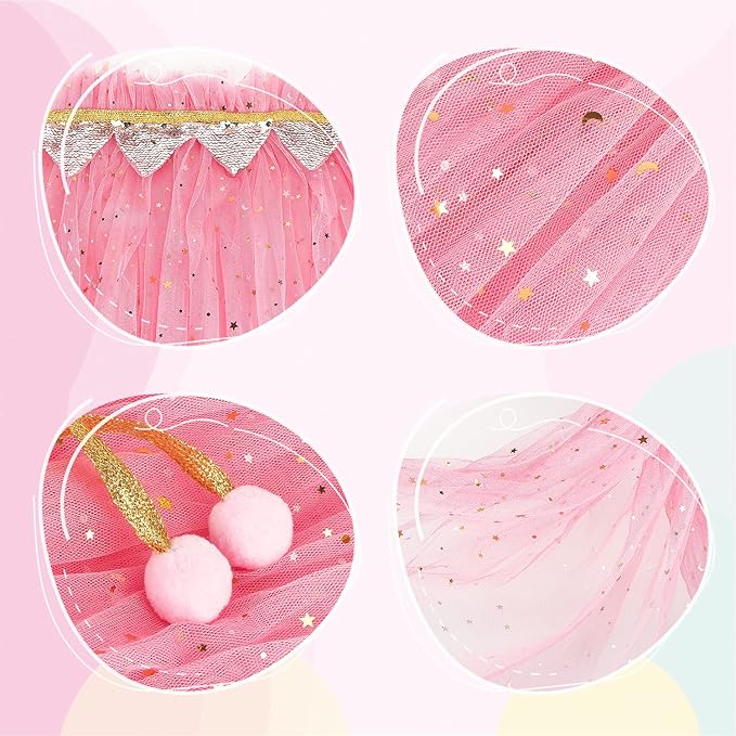 - Stylish and Sequins Cloak: Princess cape is made of soft and high quality mesh fabric, the neck of cloak with soft gold strap to prevent the shawl from falling off. Long and lightweight princess cape dotted with stars and moons that little girls love, very dazzling, makes your little girls stand out of crowd.