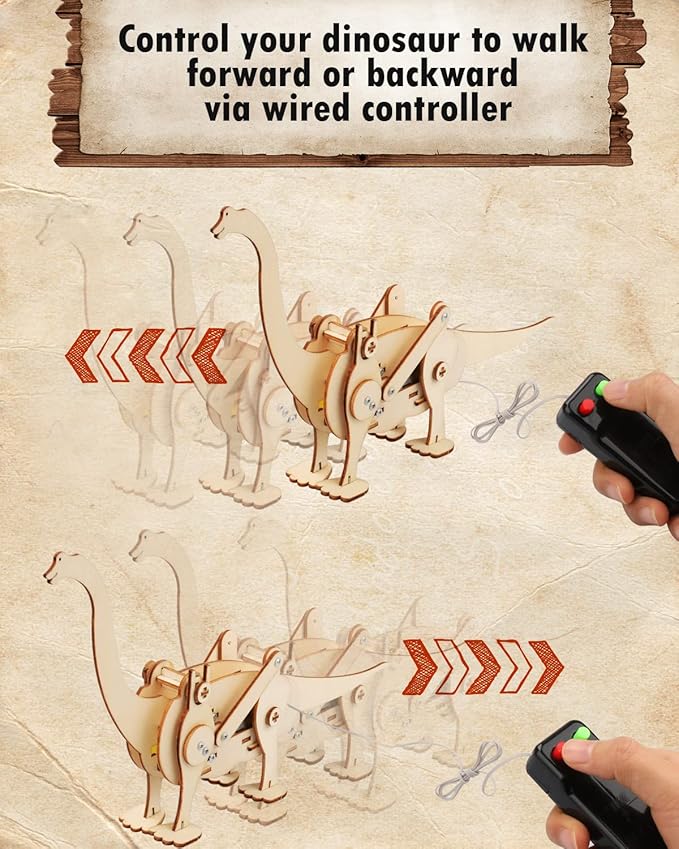 • Unique design: DIY STEM toys for ages 8-13 with wire controllers, allowing the dinosaur to move forward and backward. These wooden dinosaurs can be painted and decorated making them a unique craft kit.